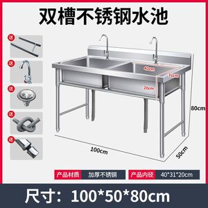 默认带单冷龙头【加厚面板】稳固不晃-100*50双池加厚款