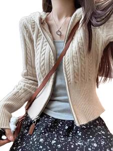 小个子针织开衫温柔气质拉链麻花毛衣外套女秋冬显瘦短款打底内搭