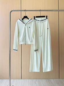 早秋新款纯色连帽卫衣双头拉链阔腿显瘦高腰休闲长裤南油女两件套