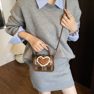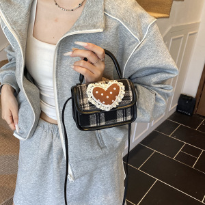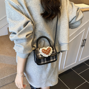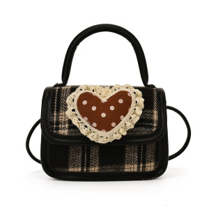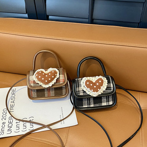 甜美蕾丝爱心男女童手提包洋气格子迷你宝宝斜挎包新款儿童配饰包