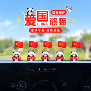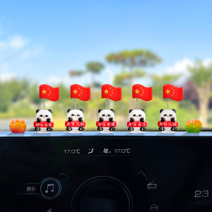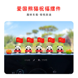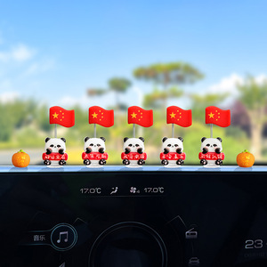 国庆爱国熊猫国旗汽车摆件五星红旗电动车内饰中控台装饰车载摆件