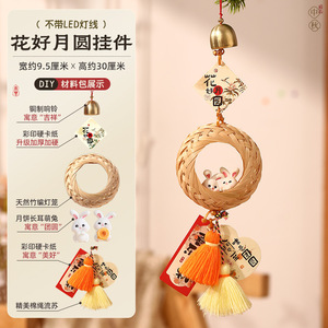 中秋节装饰竹编扇子小蒲扇福禄铃铛入户门挂件国风车载挂饰礼物品