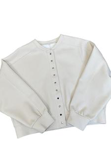 白色休闲棒球服外套女款初秋季2025新款圆领卫衣开衫无帽上衣