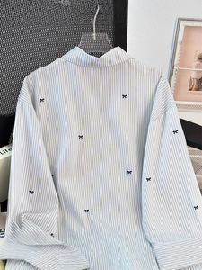 细条纹蝴蝶结衬衫