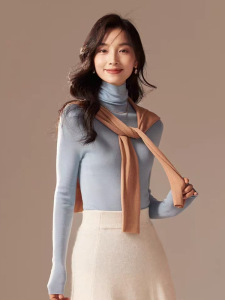 德国可机洗杨子纱 岛精18针无缝一体成型60支高领打底衫女