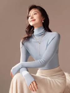 【无缝一体成型】60支扬子纱高领毛衣修身长袖打底衫无压感针织衫