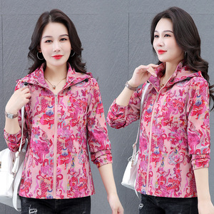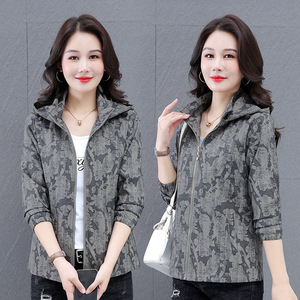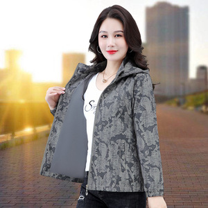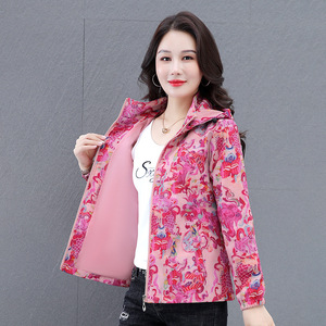 2025秋季新款连帽可拆缷夹克外套女中年妈妈装洋气数码印花拉链衫