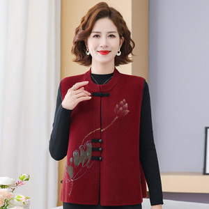 中老年女装秋季马甲外套女时尚简约古典婆婆装老年女装马夹秋装女