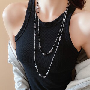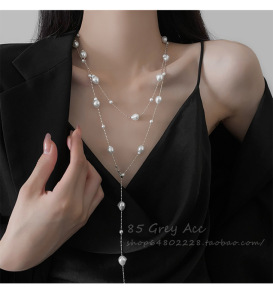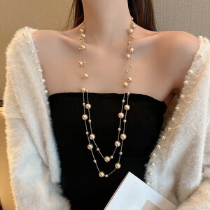 欧美长款珍珠项链2025秋冬优雅简约百搭毛衣链轻奢高级感项饰批发
