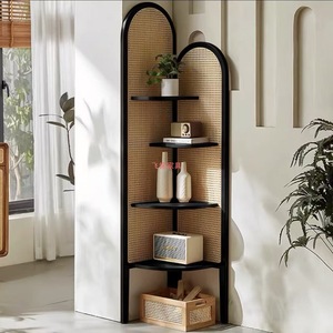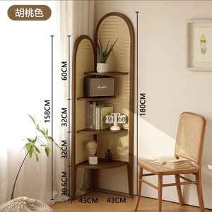 实木角柜客厅复古沙发墙边藤编置物架子中古卧室拐角三角柜收纳架