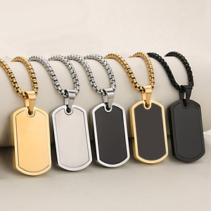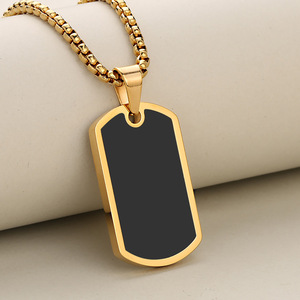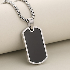 跨境热卖军牌男士吊坠光面可刻字潮牌轻奢百搭不锈钢情侣项坠链