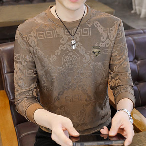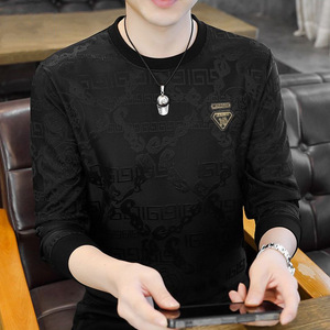 男士圆领卫衣休闲潮流提花打底衫高档长袖T恤虎头时尚冬款修身潮