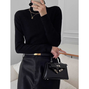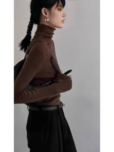 配羊毛大衣的内搭高领毛衣女秋冬堆堆领修身精纺羊毛针织打底衫