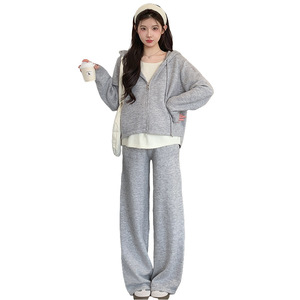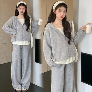 孕妇秋季套装2025新款慵懒风秋冬连帽假两件上衣阔腿裤休闲两件套