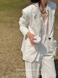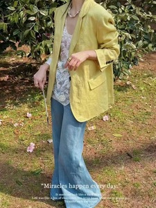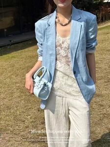 家-815-42 早秋新款多巴胺色系气质时尚麻料西装外套5929