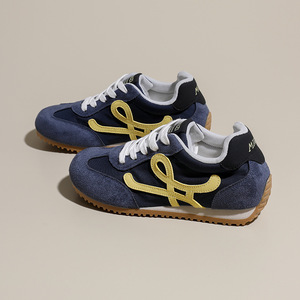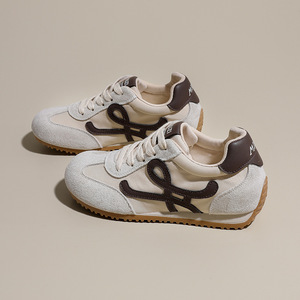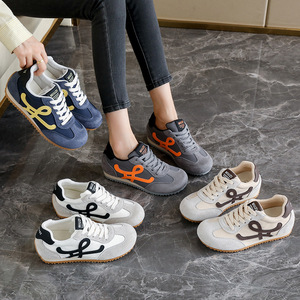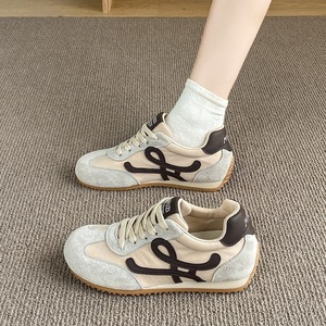 女鞋新款复古阿甘鞋女系带百搭运动休闲鞋拼色平底华夫德训鞋女款