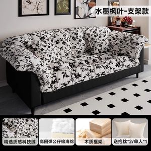复古布艺沙发客厅新款双人直排小户型卧室出租房懒人现代简沙发