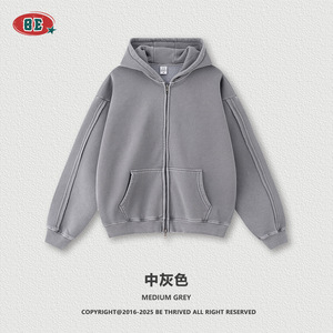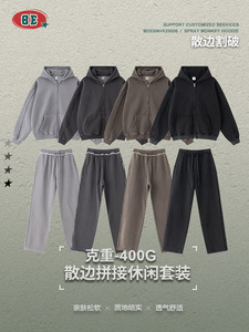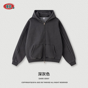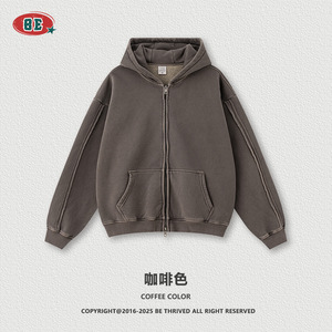 BE男装2025秋季欧美潮牌复古蜡染拼接加绒重磅拉链开衫卫裤套装男