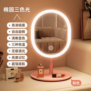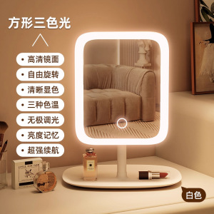 学生宿舍桌面梳妆镜带灯家用梳妆台镜子led镜子办公室台式化妆镜
