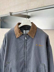高版本M1U家字母刺绣灯芯绒衣领洗水做旧棉服英伦百搭男女夹克