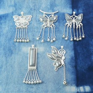 贵州民族风手工哑银项坠吊坠底空托老绣配件蝴蝶铃铛镶嵌流苏吊坠