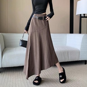 秋季新款垂感显瘦不规则下摆A字开叉设计感中长款半身裙高腰女