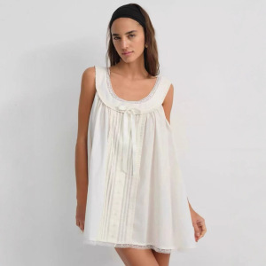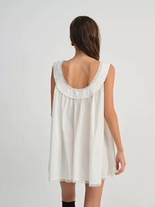 南油高版本法式纯欲风大圆领宽松A字娃娃裙度假风无袖背心连衣裙