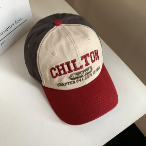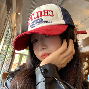 拼色字母棒球帽女美式复古百搭宽帽檐大脸鸭舌帽大头围显脸小帽子