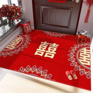 家用结婚入户门地毯新中式喜庆红色婚房脚垫门口进门耐磨耐蹭地垫