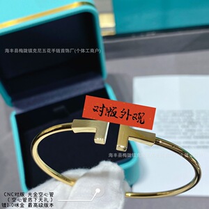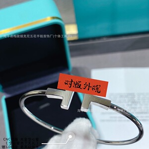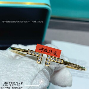 V金开口双T手镯高级感t手镯玫瑰金镶钻贝母首饰情侣520 七夕礼物