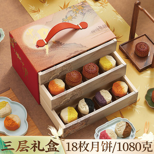 中秋节月饼礼盒装传统广式蛋黄莲蓉流心桃山皮月饼特产送礼品团购