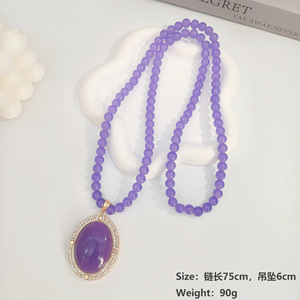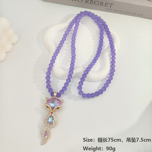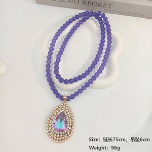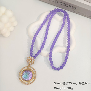 紫罗兰色新款毛衣链长款秋冬轻奢高级感紫色水晶项链新中式项饰