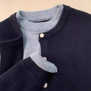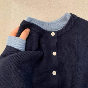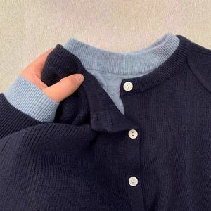 2025年新款高级感藏青色毛衣外套女秋冬慵懒宽松百搭假两件针织衫