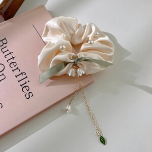 106#大肠圈玲兰花蝴蝶结流苏-米色