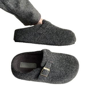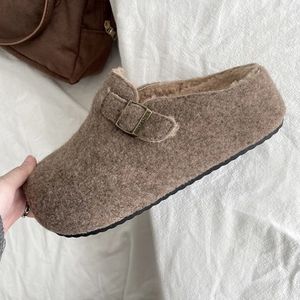 灰色勃肯鞋女厚底半拖鞋2025冬季新款外穿洋气毛呢鞋百搭毛毛女鞋