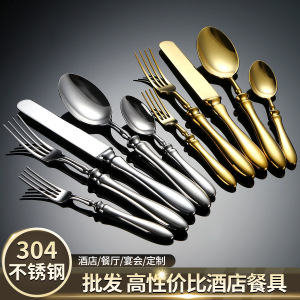 锻打304不锈钢刀叉勺实心手柄酒店西餐刀叉牛排刀不锈钢叉子批发