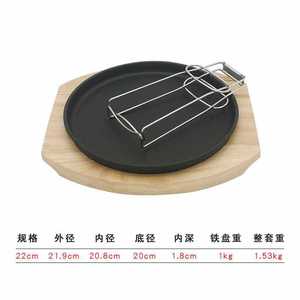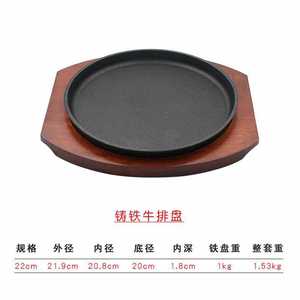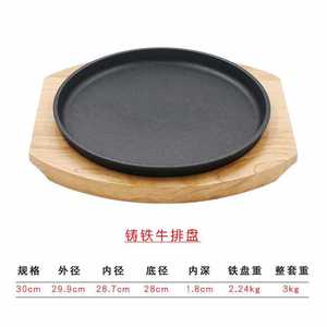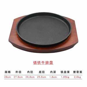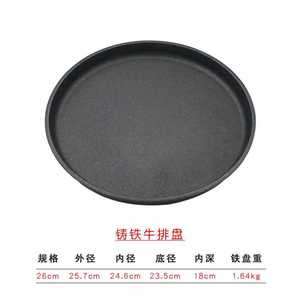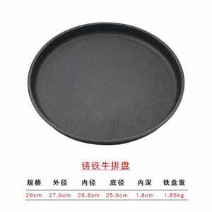 加厚西餐铁板烧盘韩式烤肉锅家用圆形煎牛排商用不粘铸铁烧烤盘子