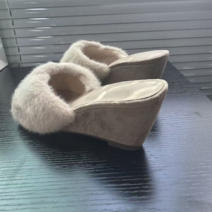 现货~坡跟毛毛拖鞋女2025秋冬新款时尚外穿百搭厚底女毛毛一字拖