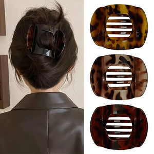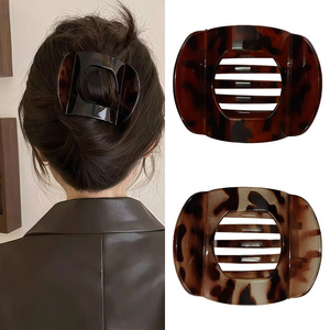 高级感扁平鲍鱼夹复古豹纹色发夹后脑勺鸭嘴夹不硌头发卡夹子头饰