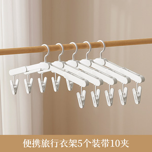 折叠衣架旅行衣架带夹子出差便携无痕防滑加粗款多功能晾衣架批发