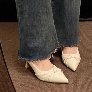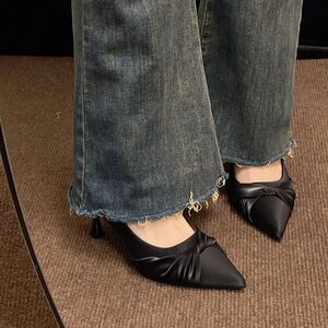法式晚晚风气质通勤高跟鞋新款软皮尖头浅口不累脚不磨脚工作单鞋