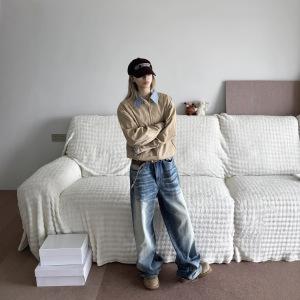美式复古卡其色巴恩风外套男秋春高知miu系穿搭假两件哈灵顿夹克