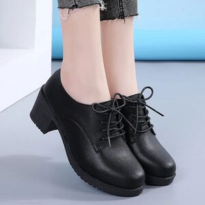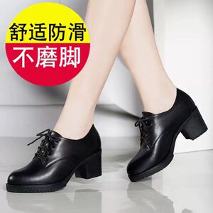 鞋子女春秋复古小皮鞋女英伦风中跟职业单鞋面试黑色工作鞋不累脚