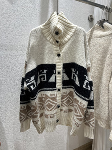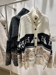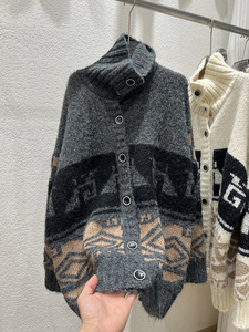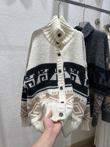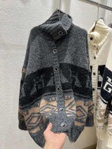 慵懒风重工提花高领开衫毛衣女2025秋冬新款宽松休闲软糯针织衫厚
