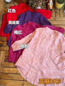 2025秋季新款中长款亚麻衬衫开衫休闲上衣文艺复古