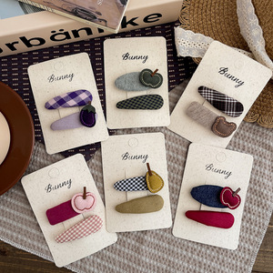 韩系新款格纹水果bb夹儿童发饰百搭苹果bb发卡前额碎发刘海夹子女