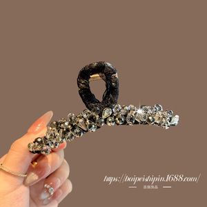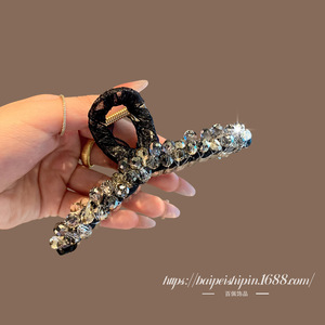 2025年黑色水钻满钻爆闪抓夹女后脑勺抓发复古高级感气质发夹头饰