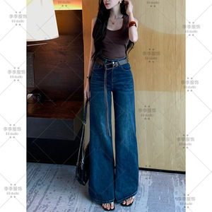 百搭复古不贴腿微喇牛仔裤女2025早秋新款高腰宽松弹力显瘦拖地裤
