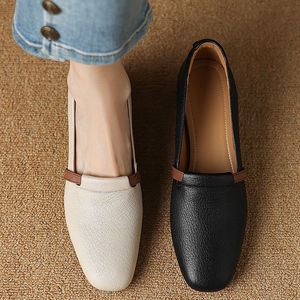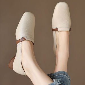 2025年夏季新品年轻人高质感豆豆奶奶圆头轻便小皮鞋夏季浅口女鞋