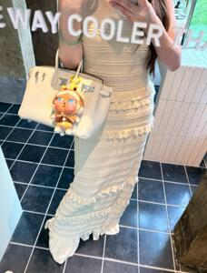 2025S家春夏新款法式荷叶边修身百搭针织连衣裙高级感小香风长裙